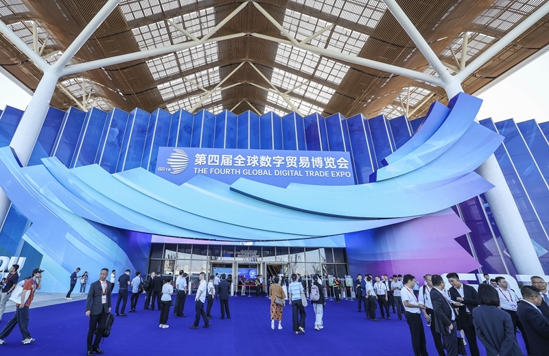這是9月25日拍攝的第四屆全球數(shù)字貿(mào)易博覽會啟動儀式現(xiàn)場。