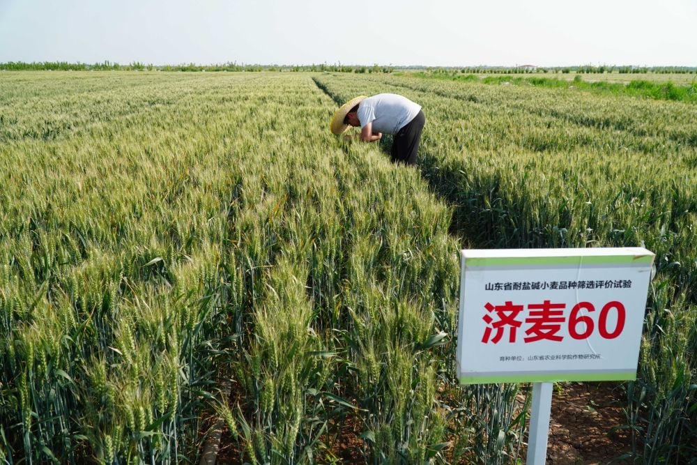 “這是山東省農(nóng)業(yè)科學院作物所小麥遺傳育種團隊專門針對旱地、鹽堿地培育的新品種?!鄙綎|省農(nóng)業(yè)科學院作物所研究員曹新有說,2022年夏收時測產(chǎn),在土壤含鹽量3.75‰的土地上,“濟麥60”平均畝產(chǎn)460.98公斤,創(chuàng)鹽堿地小麥高產(chǎn)紀錄。