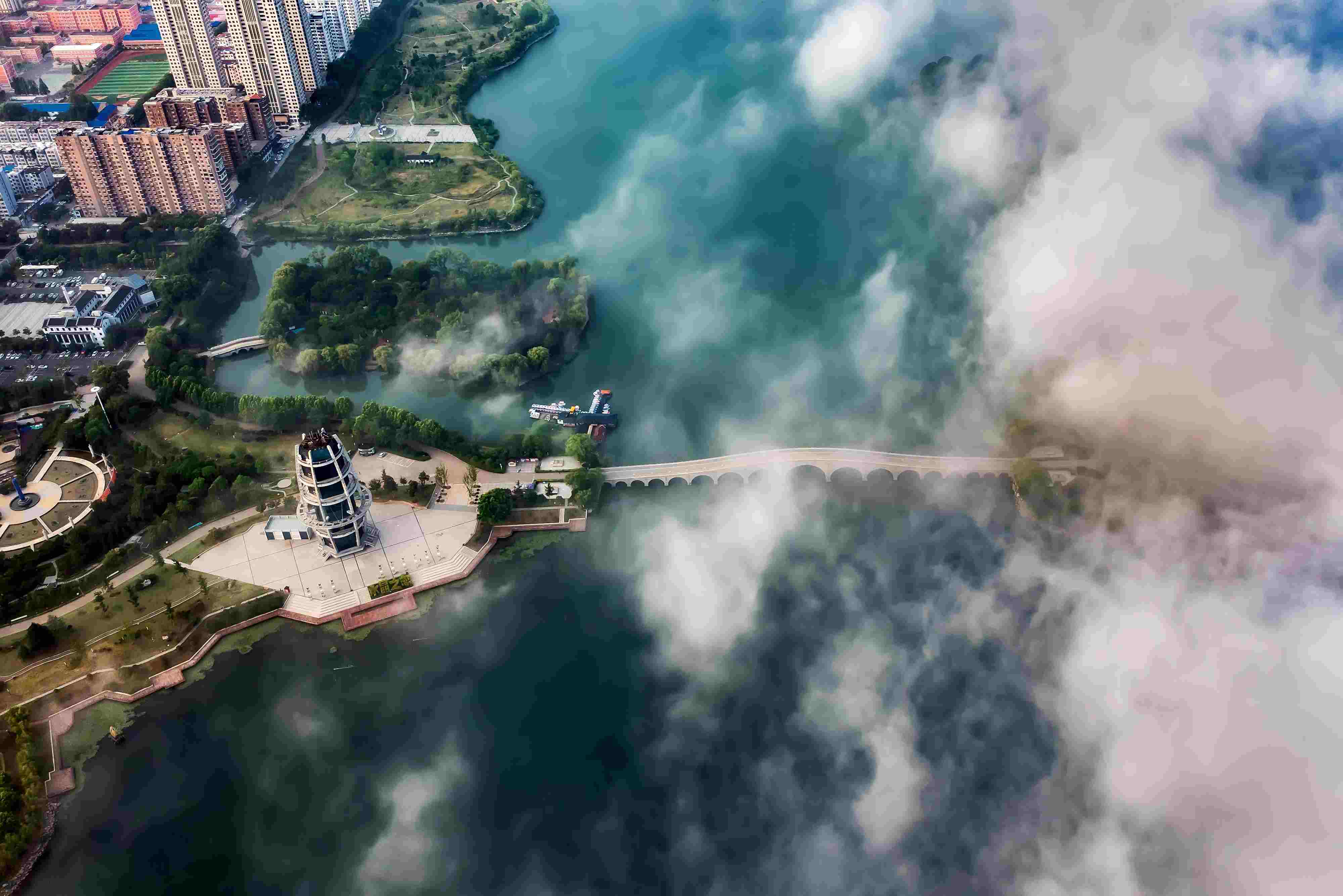 2023年6月11日,江蘇連云港東海縣,城市上空云霧繚繞,蔚為壯觀。 視覺中國