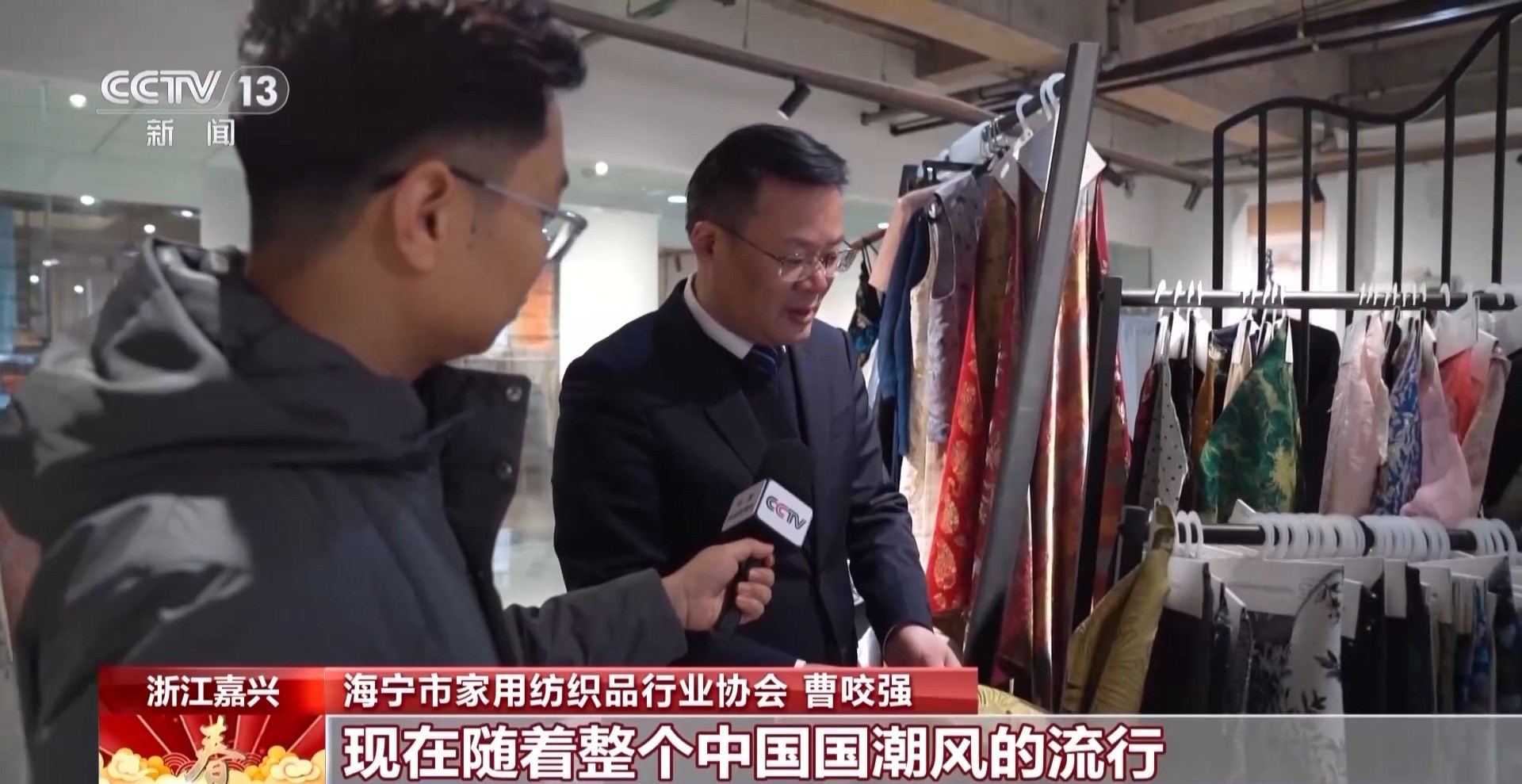 海寧市家用紡織品行業(yè)協(xié)會(huì) 曹咬強(qiáng):這款面料主要是供應(yīng)在意大利市場(chǎng)上,這個(gè)色系的面料主要供應(yīng)在美國(guó)市場(chǎng)上?,F(xiàn)在隨著整個(gè)中國(guó)國(guó)潮風(fēng)的流行,特別是在東南亞市場(chǎng),他們每次下訂單都是60萬米、80萬米。
