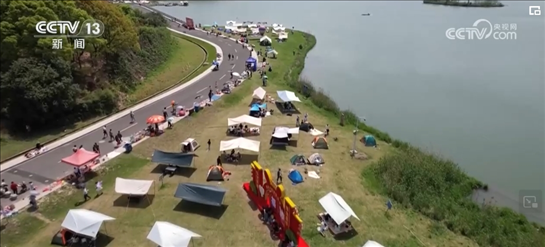 周末,在杭州拱墅運河體育公園的露營區(qū),不少市民扎起輕便的帳篷,便攜桌上擺滿了水果零食。