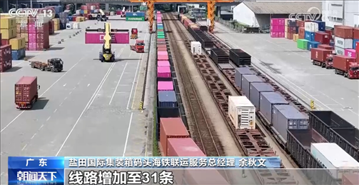 鹽田國(guó)際集裝箱碼頭海鐵聯(lián)運(yùn)服務(wù)總經(jīng)理余秋文介紹:“截至今年4月份,我們共開(kāi)通了14個(gè)海鐵聯(lián)運(yùn)內(nèi)陸港,線路增加至31條,覆蓋了大灣區(qū)、華中、西南等重要的經(jīng)濟(jì)區(qū)域?!?/p>