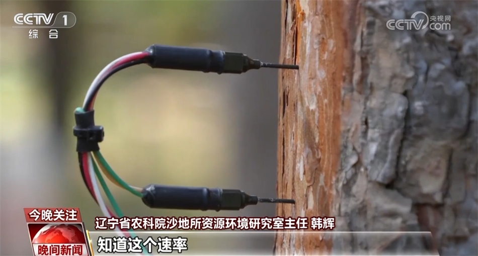 記者在采訪時(shí)看到,一棵樹的樹干上插了兩根探針,據(jù)遼寧省農(nóng)科院沙地所資源環(huán)境研究室主任韓輝介紹,這是用來監(jiān)測(cè)樹干水分的。通過監(jiān)測(cè)兩根探針之間的溫差,他們就能夠計(jì)算出這棵樹的液流速率。知道這個(gè)速率,他們就可以了解這棵樹的生長狀態(tài),這個(gè)實(shí)驗(yàn)的最終目的,是想得出在單位面積上到底有多少棵樟子松最合理。