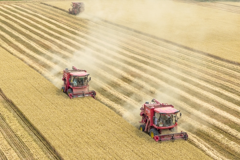6月5日,河南省焦作市溫縣武德鎮(zhèn)農民駕駛收割機收獲小麥。