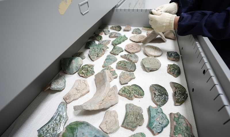 7月9日,在西夏陵管理處文物庫(kù),工作人員在整理文物。