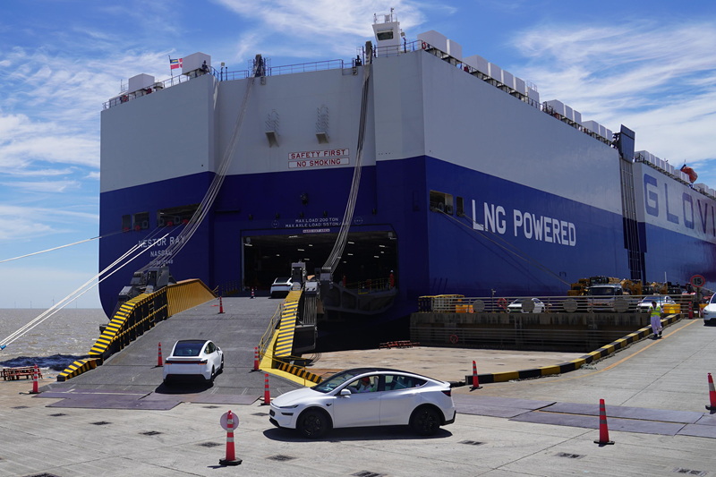 夏日炎炎,上海洋山特殊綜合保稅區(qū)毗鄰的南港碼頭上,24歲的滾裝碼頭駕駛員郭曉剛,駕駛著一輛新能源轎車,從碼頭開上滾裝汽車船“內(nèi)斯特之光”,很快這艘船就裝載著1600多輛中國出口的汽車前往南美。