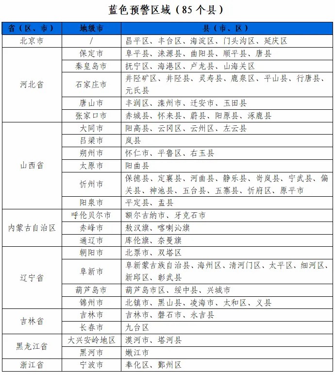 據(jù)“中國(guó)水利”微信公眾號(hào)消息,水利部和中國(guó)氣象局7月28日18時(shí)聯(lián)合發(fā)布紅色山洪災(zāi)害氣象預(yù)警:預(yù)計(jì),7月28日20時(shí)至7月29日20時(shí),北京東部、天津北部、河北中部和東北部、內(nèi)蒙古東北部、遼寧西部、黑龍江西部等地部分地區(qū)發(fā)生山洪災(zāi)害可能性大(橙色預(yù)警),其中,北京東部、天津北部、河北東北部局地發(fā)生山洪災(zāi)害可能性很大(紅色預(yù)警),預(yù)警區(qū)域涉及的縣(市、區(qū))見(jiàn)下表。其他地區(qū)也可能因局地短歷時(shí)強(qiáng)降水引發(fā)山洪災(zāi)害,請(qǐng)各地注意做好實(shí)時(shí)監(jiān)測(cè)、防汛預(yù)警和轉(zhuǎn)移避險(xiǎn)等防范工作。