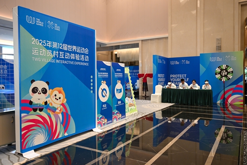 這是8月3日在成都世運會運動員村內(nèi)拍攝的互動體驗活動區(qū)。