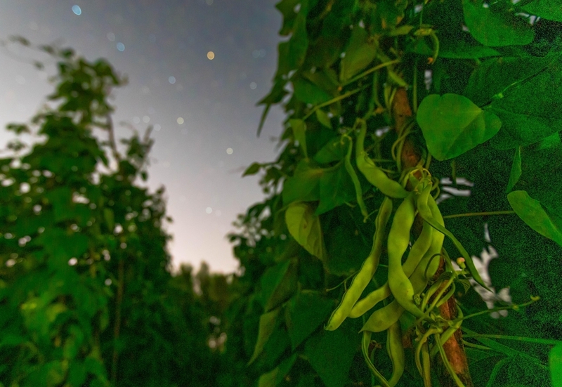 7月26日在黑龍江省佳木斯市蓮江口鎮(zhèn)拍攝的星空下的豆角。