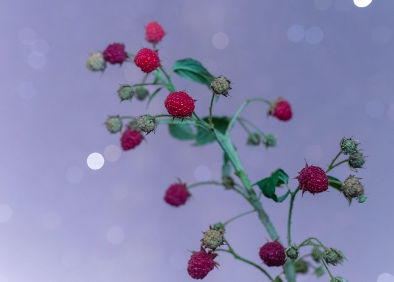 7月26日在黑龍江省佳木斯市郊區(qū)拍攝的星空下的樹莓。