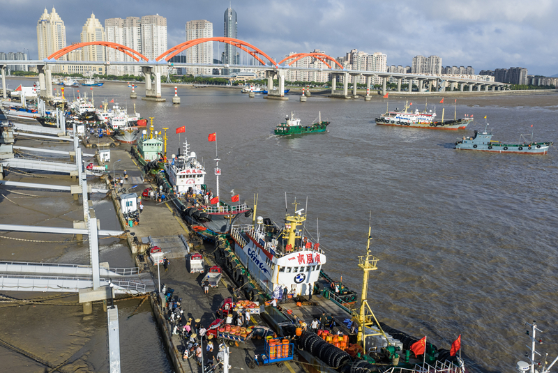 近日,東海部分海域結(jié)束為期3個(gè)月的伏季休漁期,浙江舟山市申請(qǐng)了專(zhuān)項(xiàng)捕撈特許的漁船結(jié)束休漁,開(kāi)赴東海海域進(jìn)行捕撈作業(yè)。漁運(yùn)船和漁船一同抵達(dá)作業(yè)漁場(chǎng),捕撈上來(lái)的海產(chǎn)品由漁運(yùn)船先行送回港口碼頭,漁船則留在海上繼續(xù)生產(chǎn)。