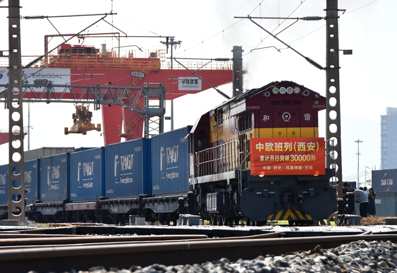 當(dāng)日上午,滿載著55個集裝箱光伏組件的X9043次中歐班列從西安國際港站駛出,開往阿塞拜疆巴庫,標(biāo)志著中歐班列(西安)自2013年開行首列以來累計開行突破30000列,開行總量超過全國中歐班列累計開行總量的四分之一。西安國際港站也成為了全國首個中歐班列開行量突破30000列的車站,開行量、貨運量、重箱率等核心指標(biāo)位居全國第一。