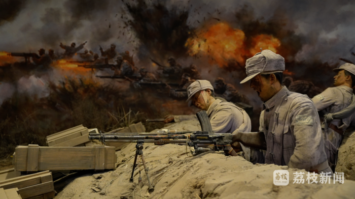 全連滿打滿算僅82人,裝備只有一挺重機(jī)槍、三挺輕機(jī)槍和少量槍榴彈。而進(jìn)犯的日偽軍上千人,不僅兵力懸殊,更配有野戰(zhàn)炮、重機(jī)槍等精良武器。眼看劉老莊的群眾尚未撤離,為掩護(hù)百姓和淮海區(qū)黨政機(jī)關(guān)安全轉(zhuǎn)移,4連官兵在連長(zhǎng)白思才、指導(dǎo)員李云鵬的率領(lǐng)下,毅然選擇留下來(lái)奮勇阻擊。