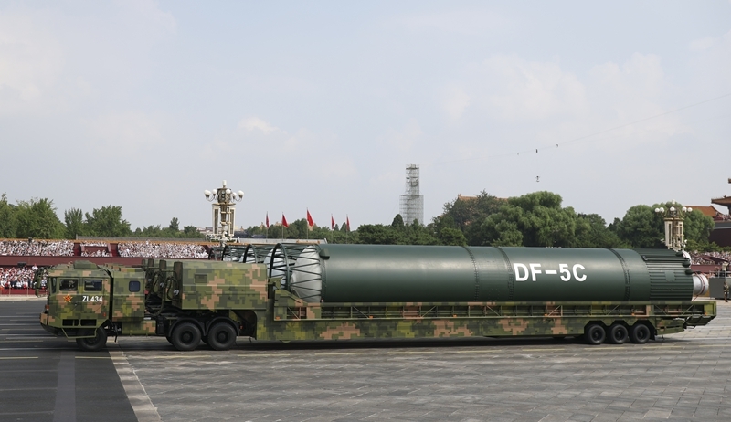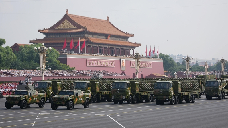 9月3日,紀(jì)念中國(guó)人民抗日戰(zhàn)爭(zhēng)暨世界反法西斯戰(zhàn)爭(zhēng)勝利80周年大會(huì)在北京隆重舉行。這是火箭軍方隊(duì)接受檢閱。