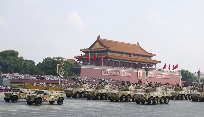 9月3日,紀(jì)念中國(guó)人民抗日戰(zhàn)爭(zhēng)暨世界反法西斯戰(zhàn)爭(zhēng)勝利80周年大會(huì)在北京隆重舉行。這是陸軍方隊(duì)接受檢閱。