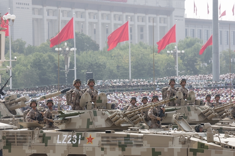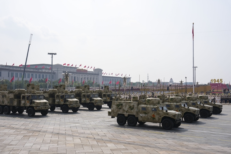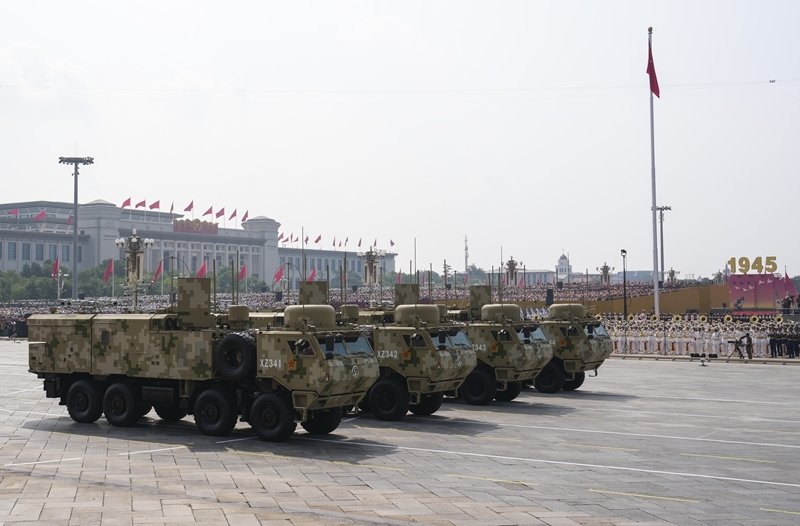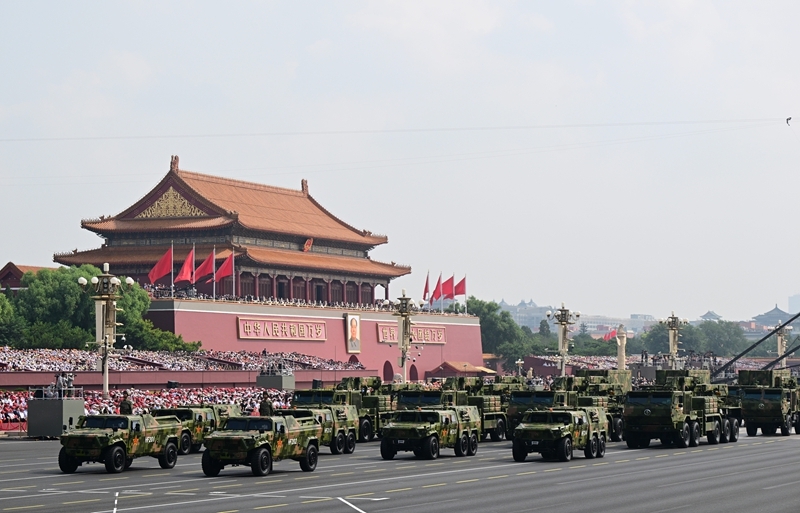 9月3日,紀(jì)念中國(guó)人民抗日戰(zhàn)爭(zhēng)暨世界反法西斯戰(zhàn)爭(zhēng)勝利80周年大會(huì)在北京隆重舉行。這是遠(yuǎn)程火炮方隊(duì)接受檢閱。