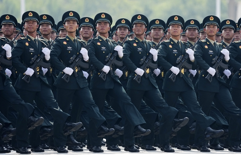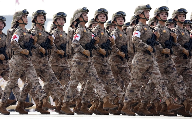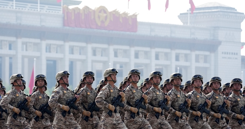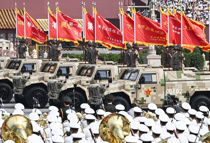 9月3日,紀(jì)念中國(guó)人民抗日戰(zhàn)爭(zhēng)暨世界反法西斯戰(zhàn)爭(zhēng)勝利80周年大會(huì)在北京隆重舉行。這是信息支援部隊(duì)方隊(duì)接受檢閱。