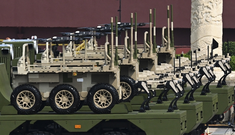 9月3日,紀(jì)念中國(guó)人民抗日戰(zhàn)爭(zhēng)暨世界反法西斯戰(zhàn)爭(zhēng)勝利80周年大會(huì)在北京隆重舉行。這是陸上無(wú)人作戰(zhàn)方隊(duì)的裝備。