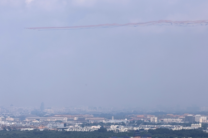 9月3日,紀(jì)念中國(guó)人民抗日戰(zhàn)爭(zhēng)暨世界反法西斯戰(zhàn)爭(zhēng)勝利80周年大會(huì)在北京隆重舉行。這是教練機(jī)梯隊(duì)接受檢閱。