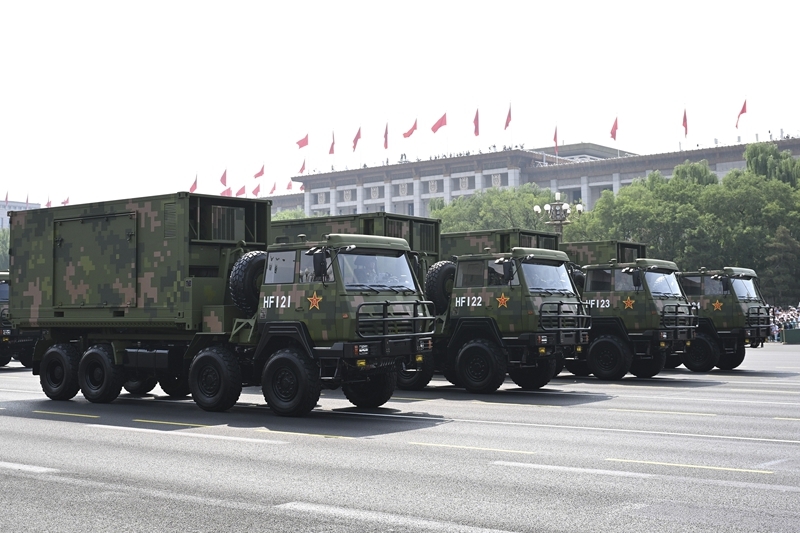 9月3日,紀(jì)念中國人民抗日戰(zhàn)爭暨世界反法西斯戰(zhàn)爭勝利80周年大會(huì)在北京隆重舉行。這是裝備方隊(duì)通過天安門廣場(chǎng)。