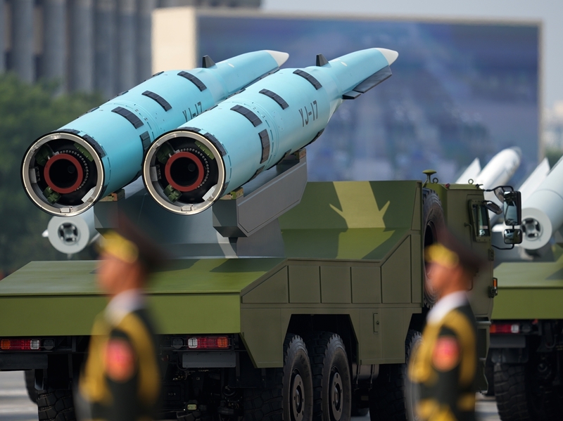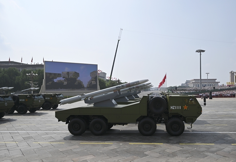 9月3日,紀(jì)念中國人民抗日戰(zhàn)爭暨世界反法西斯戰(zhàn)爭勝利80周年大會(huì)在北京隆重舉行。這是反艦導(dǎo)彈方隊(duì)接受檢閱。