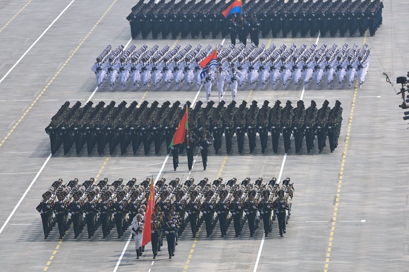 9月3日,紀(jì)念中國(guó)人民抗日戰(zhàn)爭(zhēng)暨世界反法西斯戰(zhàn)爭(zhēng)勝利80周年大會(huì)在北京隆重舉行。這是徒步方隊(duì)接受檢閱。