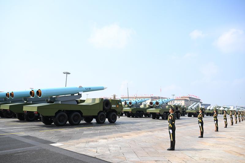 9月3日,紀(jì)念中國(guó)人民抗日戰(zhàn)爭(zhēng)暨世界反法西斯戰(zhàn)爭(zhēng)勝利80周年大會(huì)在北京隆重舉行。這是巡航導(dǎo)彈方隊(duì)接受檢閱。