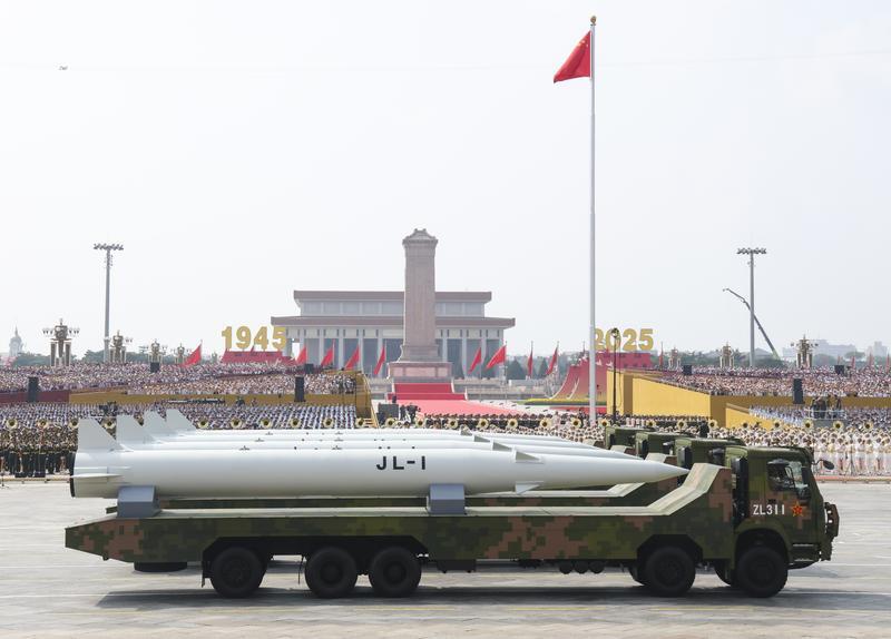 9月3日,紀(jì)念中國(guó)人民抗日戰(zhàn)爭(zhēng)暨世界反法西斯戰(zhàn)爭(zhēng)勝利80周年大會(huì)在北京隆重舉行。這是核導(dǎo)彈第一方隊(duì)接受檢閱。