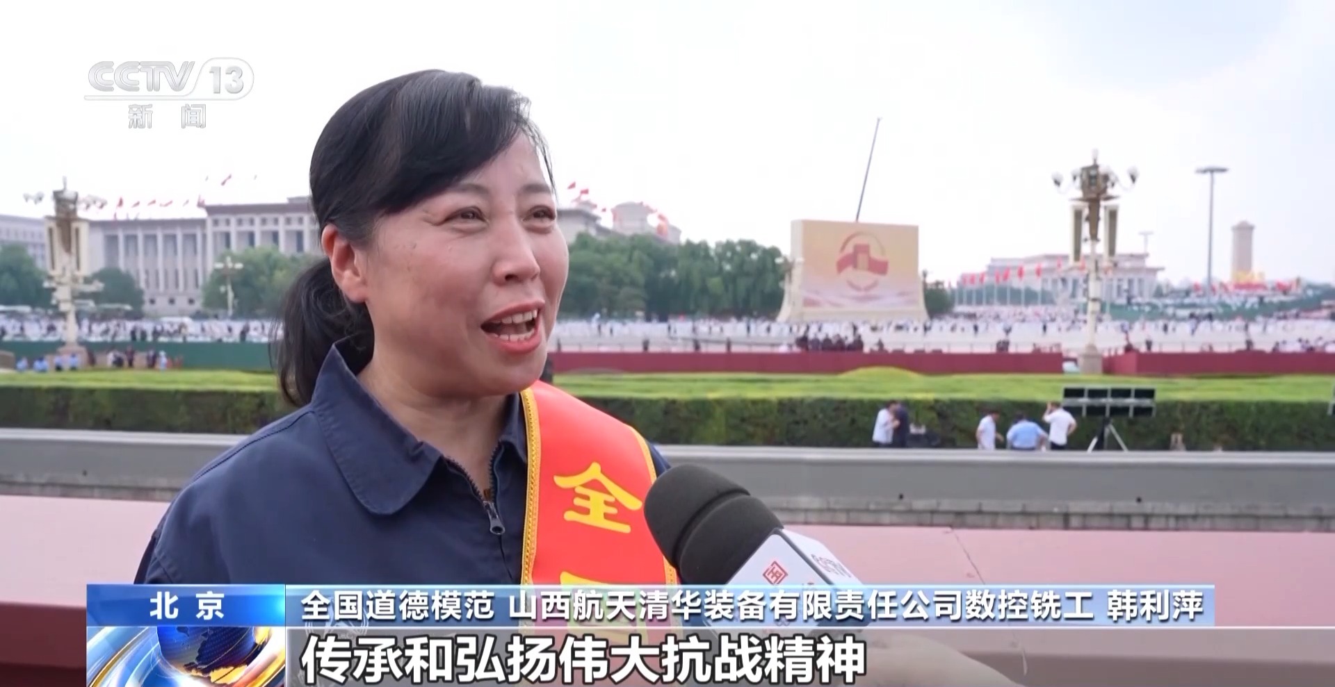 全國(guó)道德模范、山西航天清華裝備有限責(zé)任公司數(shù)控銑工 韓利萍:傳承和弘揚(yáng)偉大抗戰(zhàn)精神,這句話對(duì)我的觸動(dòng)非常深。我要把忠誠(chéng)愛(ài)國(guó)、精益求精、堅(jiān)韌不拔的精神融入日常工作中,把每一個(gè)產(chǎn)品都加工成精品,為航天強(qiáng)國(guó)貢獻(xiàn)力量