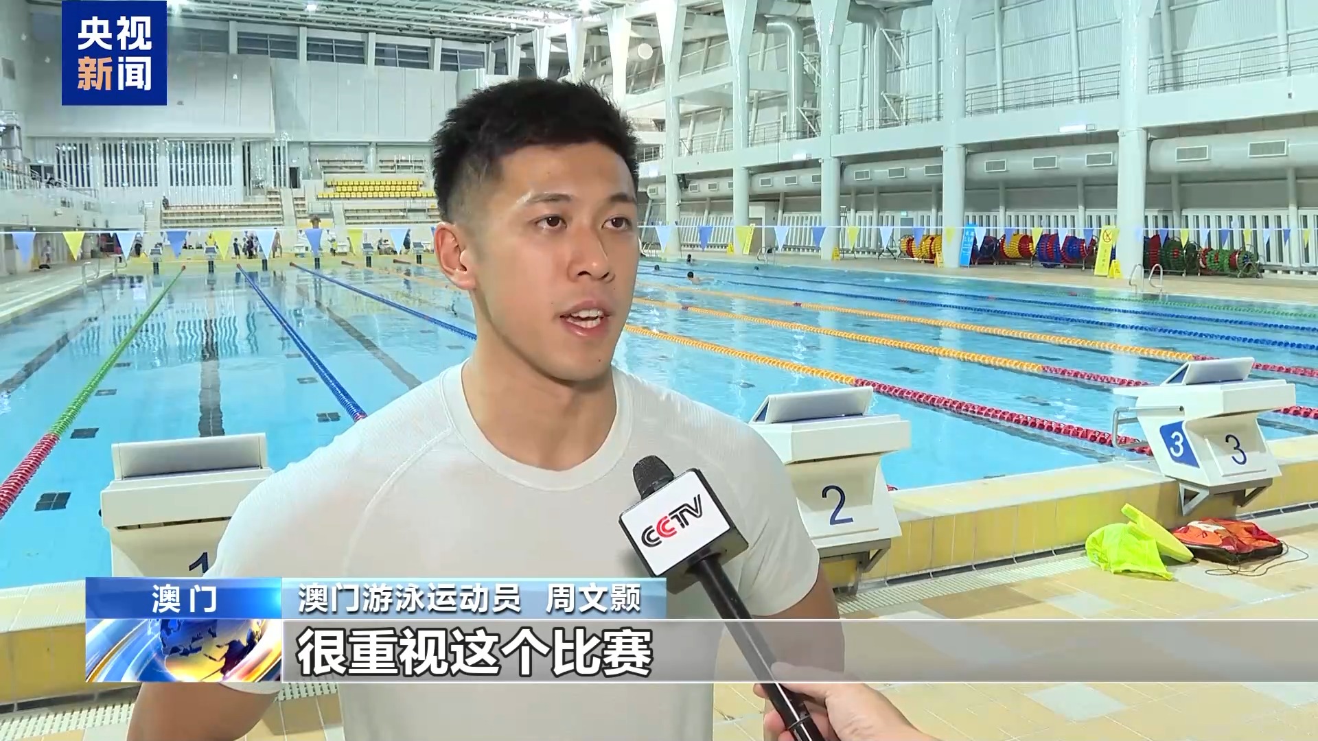 澳門(mén)游泳運(yùn)動(dòng)員 周文顥:我把全運(yùn)會(huì)當(dāng)作是今年最重要的比賽,很重視這個(gè)比賽,然后比賽水平也很高。