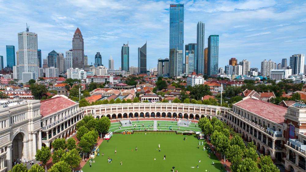 這是8月28日拍攝的位于天津五大道歷史文化街區(qū)的民園廣場(無人機照片)。新華社記者 趙子碩 攝