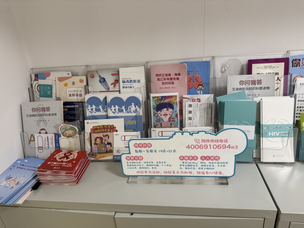 2025年11月27日,上海青艾健康促進(jìn)中心公布咨詢(xún)、心理熱線等,給予新發(fā)感染者、穩(wěn)定用藥感染者和晚期艾滋病人不同類(lèi)型的陪伴服務(wù)。澎湃新聞?dòng)浾?陳斯斯 圖