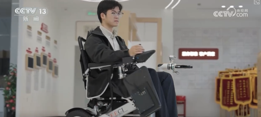 在杭州西湖區(qū),工作人員正在對眼前這款智能輪椅進行技術升級。結(jié)合失能老人手腳行動不便的痛點,這款輪椅搭載了深度相機和智能機械臂,通過內(nèi)置的AI算法,使用者只需和平常一樣坐在上面,簡單用語言表達需求,輪椅就可以判斷路線,智能移動。