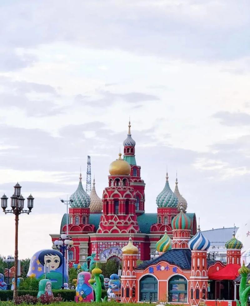 套娃廣場:彩色套娃雕塑與俄式洋蔥頂建筑相映,推薦用廣角鏡頭低角度拍攝,將藍天、雕塑與人物剪影納入畫面,突出異域感。
