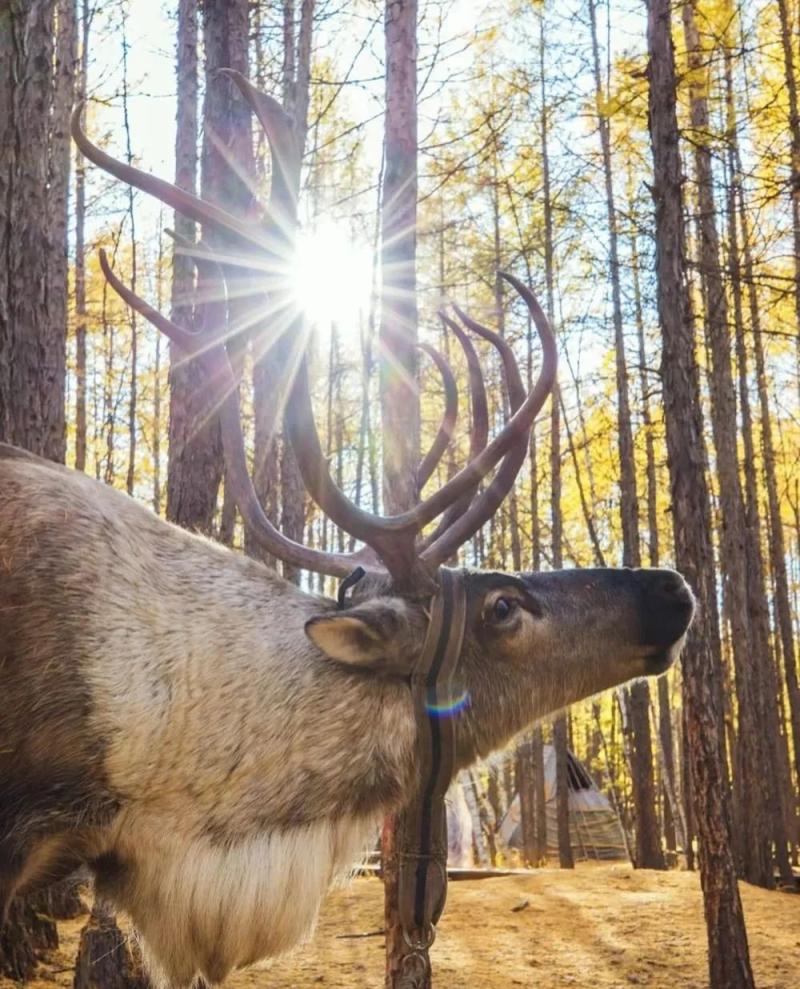 馴鹿互動:16:00至17:00林區(qū)光線柔和,讓模特手持苔蘚投喂馴鹿,用連拍模式抓拍馴鹿抬頭、人物微笑的瞬間;馴鹿低頭時,可拍攝人物輕撫鹿角的特寫,體現人與動物的溫情。