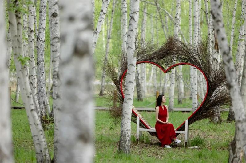 界河白樺林:秋黃的白樺樹與界河形成層次感,用長焦鏡頭壓縮空間,拍攝人物漫步林間的背影,背景虛化突出“人在畫中游”的意境。