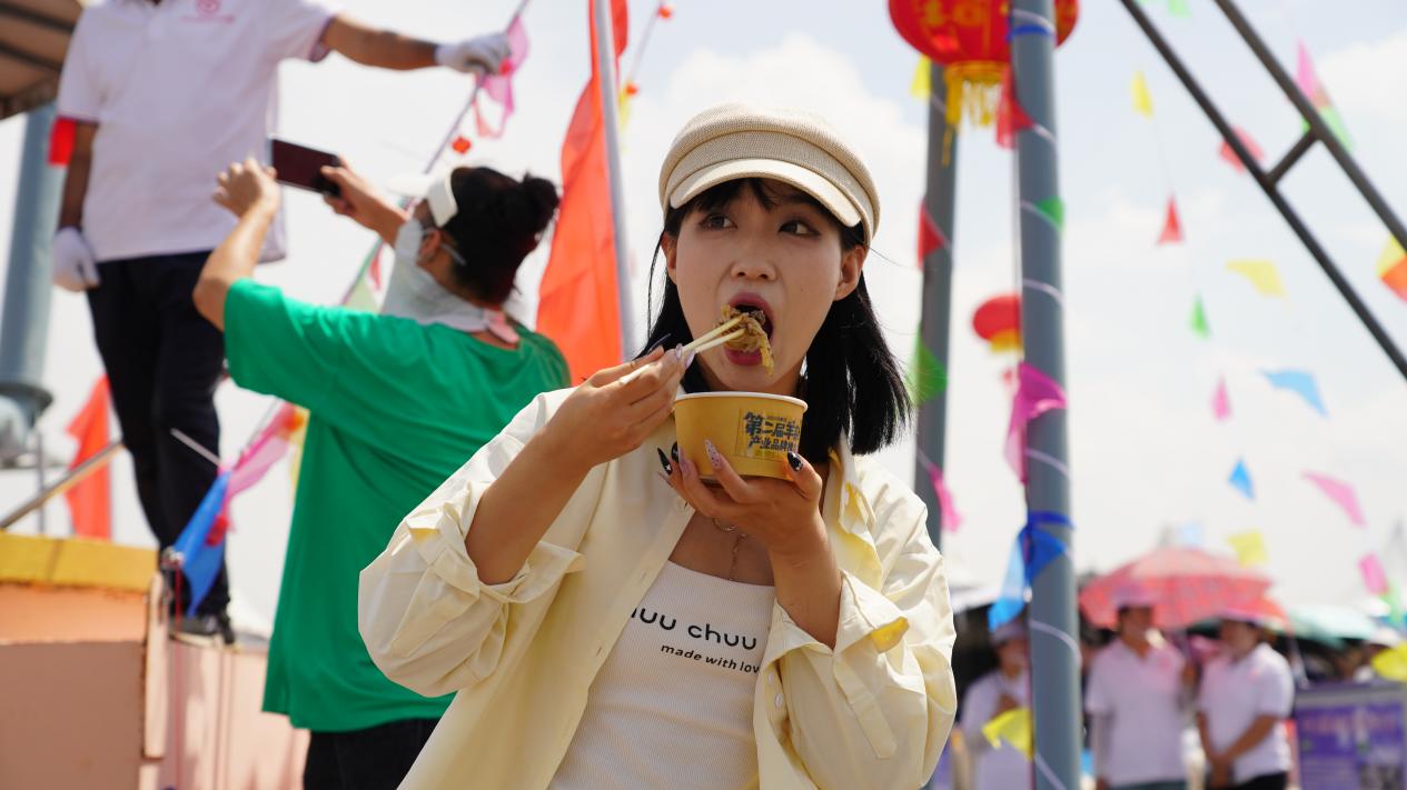 活動(dòng)現(xiàn)場,巨型銅鍋穩(wěn)居C位,隨著鍋蓋打開,熱氣裹挾著濃郁香味沖天而起,紅亮的湯汁中翻滾著羊腸、羊肚,引得圍觀群眾頻頻點(diǎn)贊。