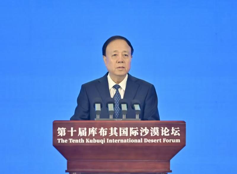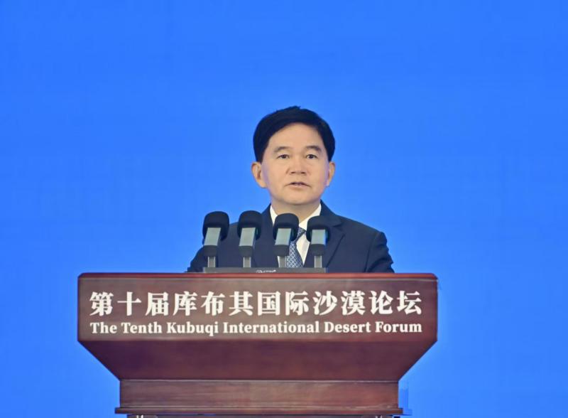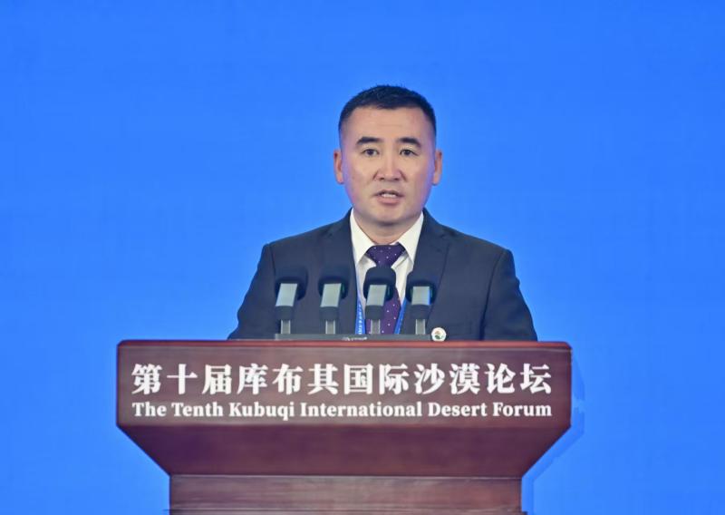 9月16日,國家林業(yè)和草原局局長劉國洪在第十屆庫布其國際沙漠論壇開幕式上致辭。草原云·內(nèi)蒙古新聞網(wǎng)記者 馬建兵 攝