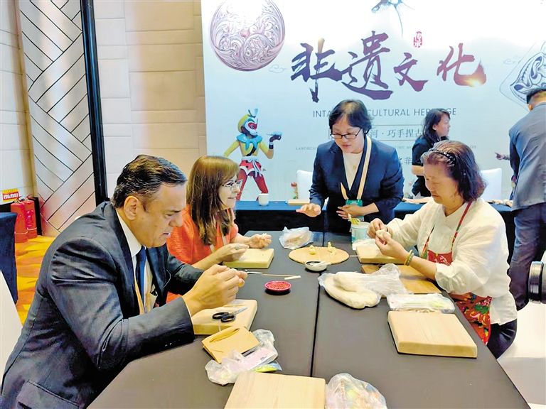 外賓在第五屆中蒙博覽會(huì)2025年國家向北開放重要橋頭堡智庫論壇非遺文化展區(qū)體驗(yàn)。 草原云·內(nèi)蒙古新聞網(wǎng)記者 李永桃 攝