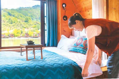 或面朝大海,或棲居山間,在很多人眼中,民宿管家的工作正是大家追尋的“詩與遠方”。實際上,孔杰表示,民宿管家的日常工作綜合性強,干起來并不輕松。她舉例說,除了提供基礎的住宿服務,如辦理入住、接待、清潔、安排用餐等,還要為住客規(guī)劃出行路線、推薦游玩景點,如怎么爬山戲水、景區(qū)數(shù)十處特色體驗館如何游玩等。