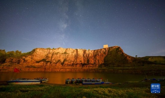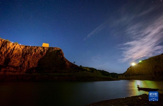 黃河老牛灣位于內(nèi)蒙古自治區(qū)和山西省交界處。夜空下,峽谷兩岸壁立千仞,黃河奔流不息,明長(zhǎng)城依山而行,風(fēng)光壯美。